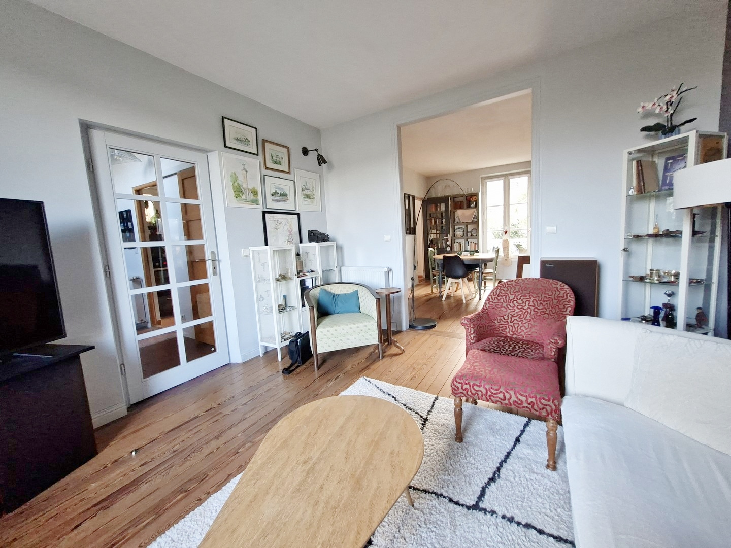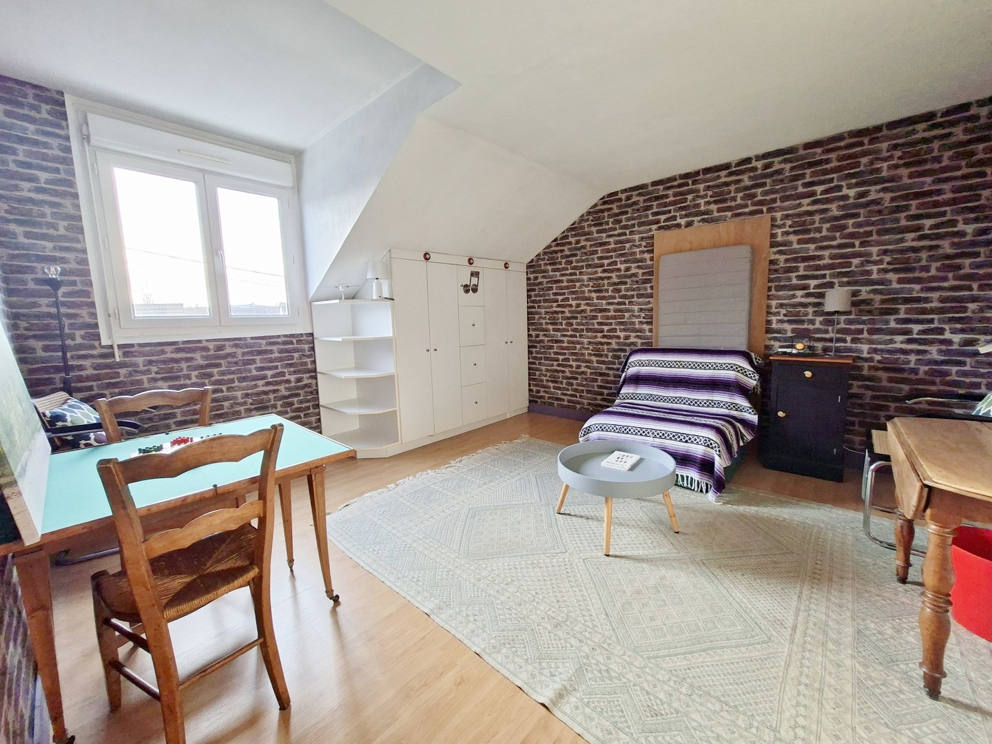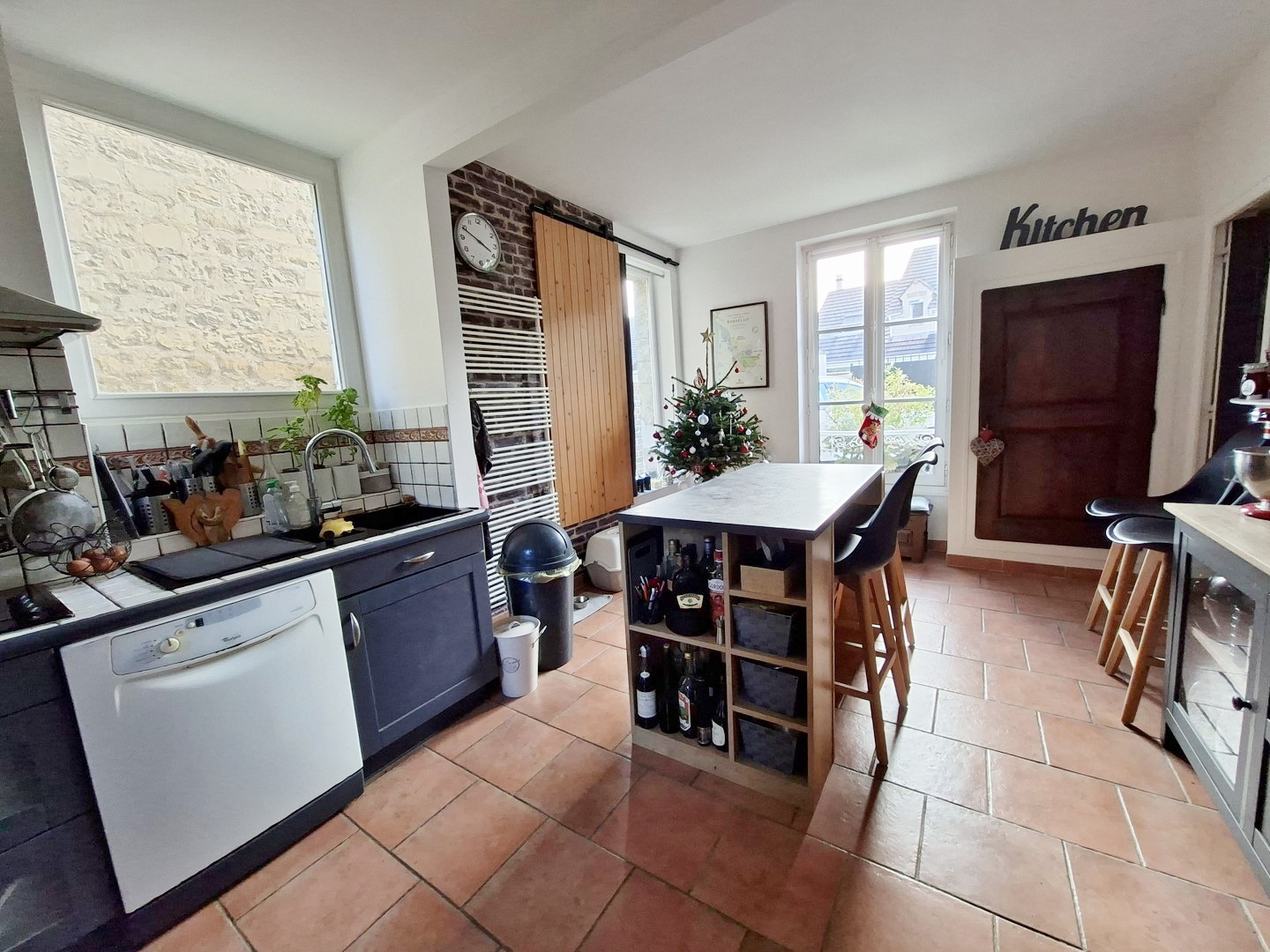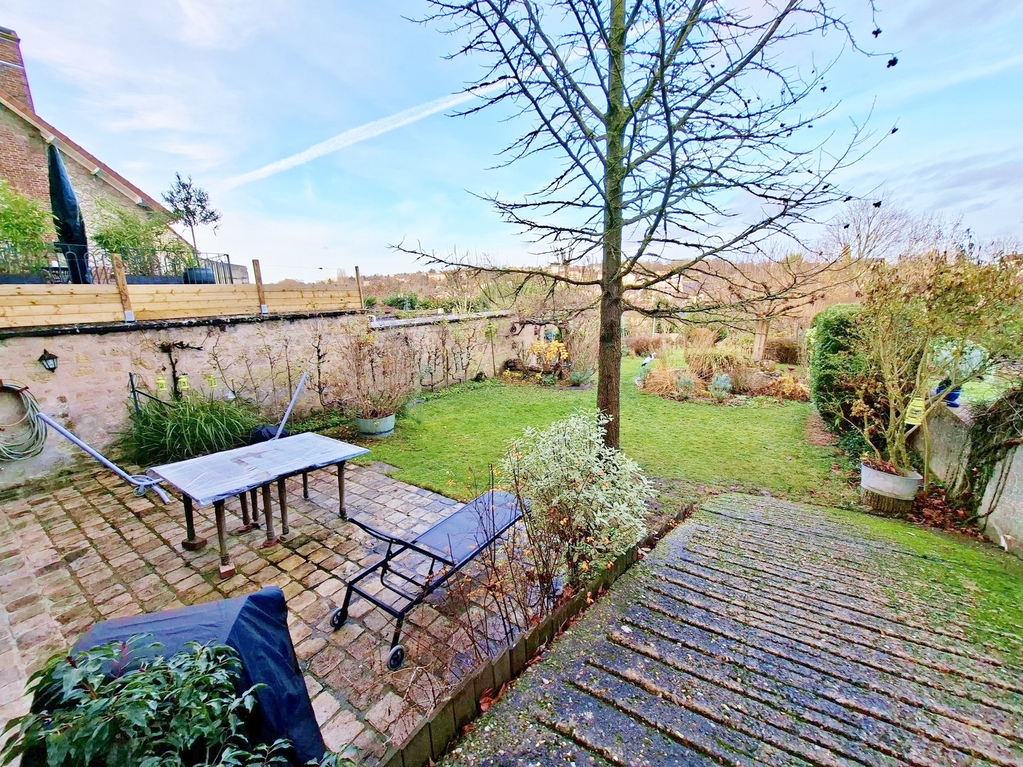 Pontoise, maison de 8 pièces principales, 156 m² habitables, 163 m² utiles, édifiée sur 1218 m² de terrain clos. Elle comprend au rdc : entrée, dessing, cuisine dinatoire de 17,91 m², séjour et salon parquetés 15,27 et 15,37 m², wc. A u 1er étage : palier tomette, 3 chambres dont une avec placard, 9,59 - 15,49 - 15,47 m², toilettes, salle de bains, couloir. Au 2ème étage : palier, bureau 7,84 m², 2 chambres 13,83 m² chacune, toilettes, salle d'eau. Sous-sol total 60 m² : atelier, buanderie, cave, pièce. Cour possibilié de stationnement. Honoraires charge vendeur.