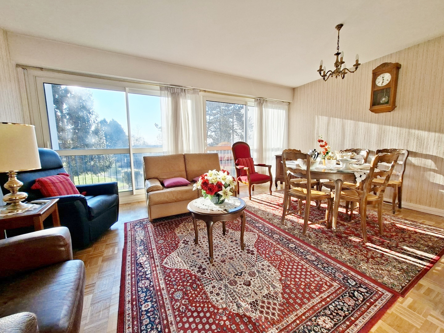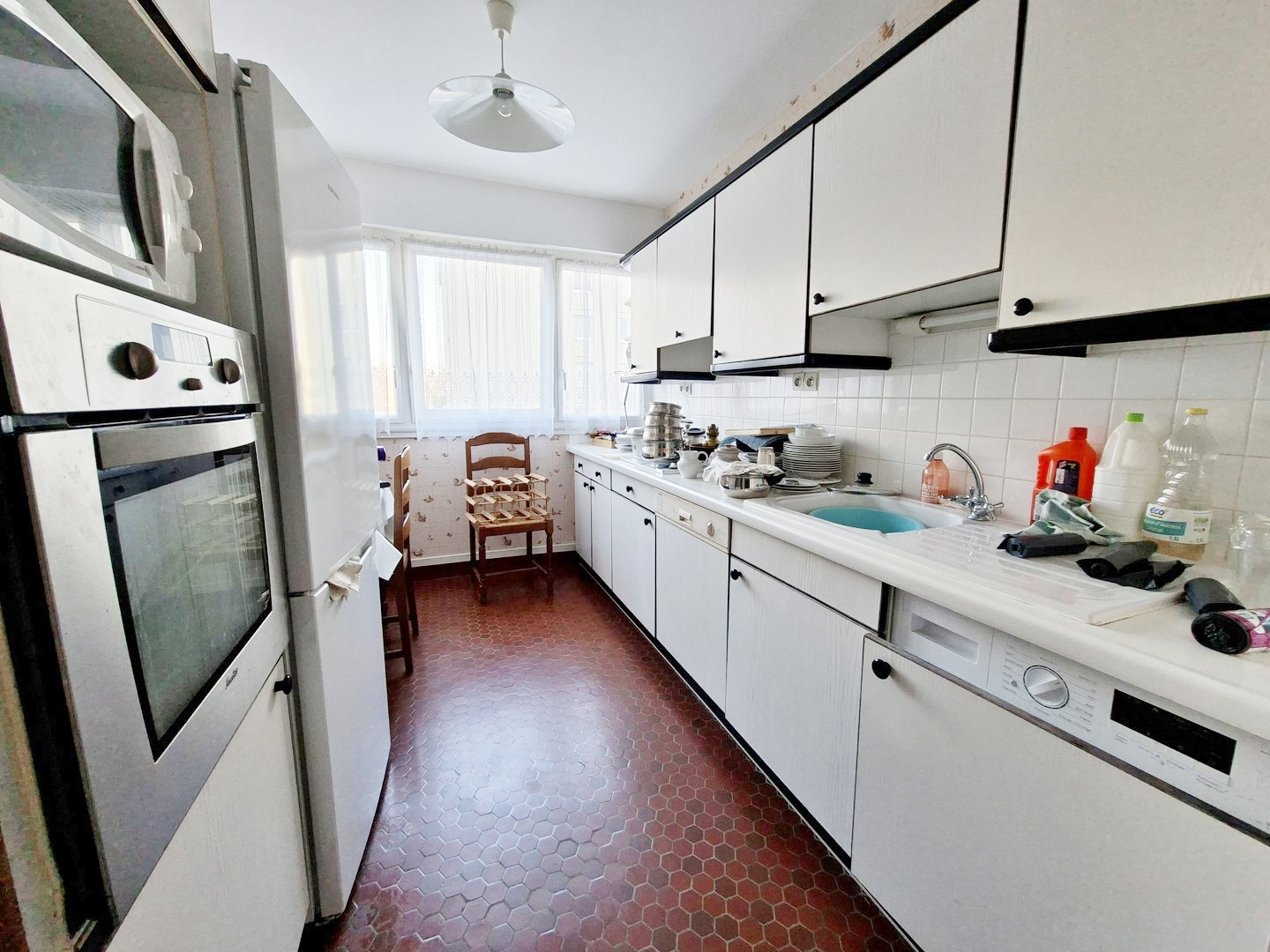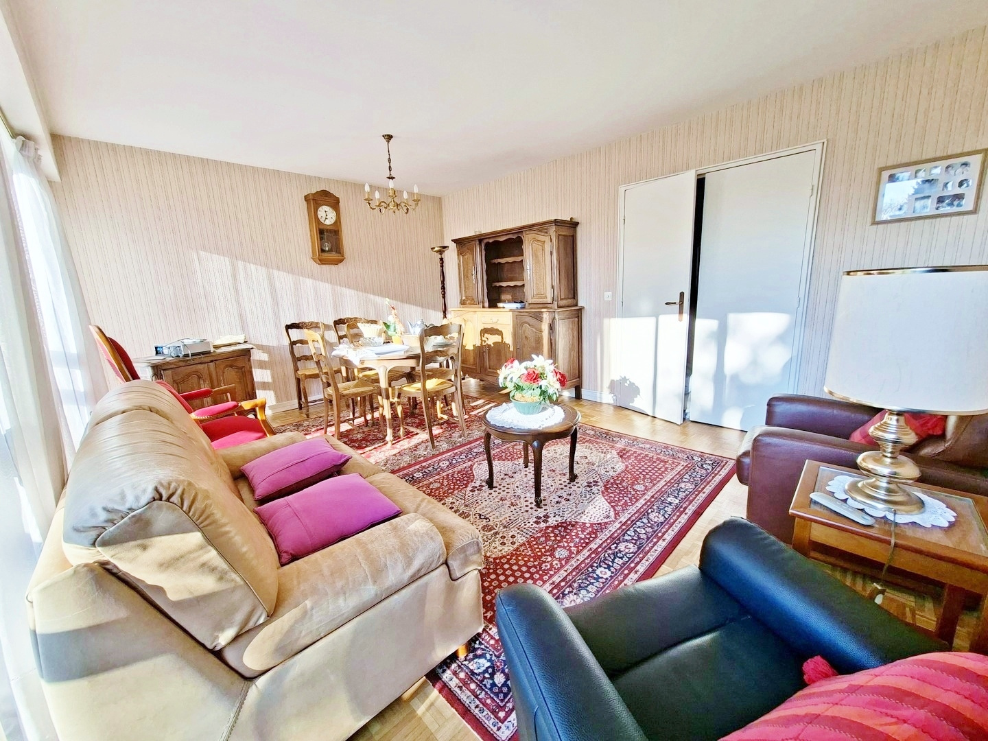 Pontoise, appartement de 3 pièces principales, 65 m² habitables, comprenant : entrée, cuisine, séjour 19,73 m², couloir, toilettes, 2 chambres 10,72 et 12,46 m², salle d'eau. Double vitrage, porte blindée, volets roulants électrique - Chauffage collectif. Cave, parking. Honoraires charge intégrale vendeur