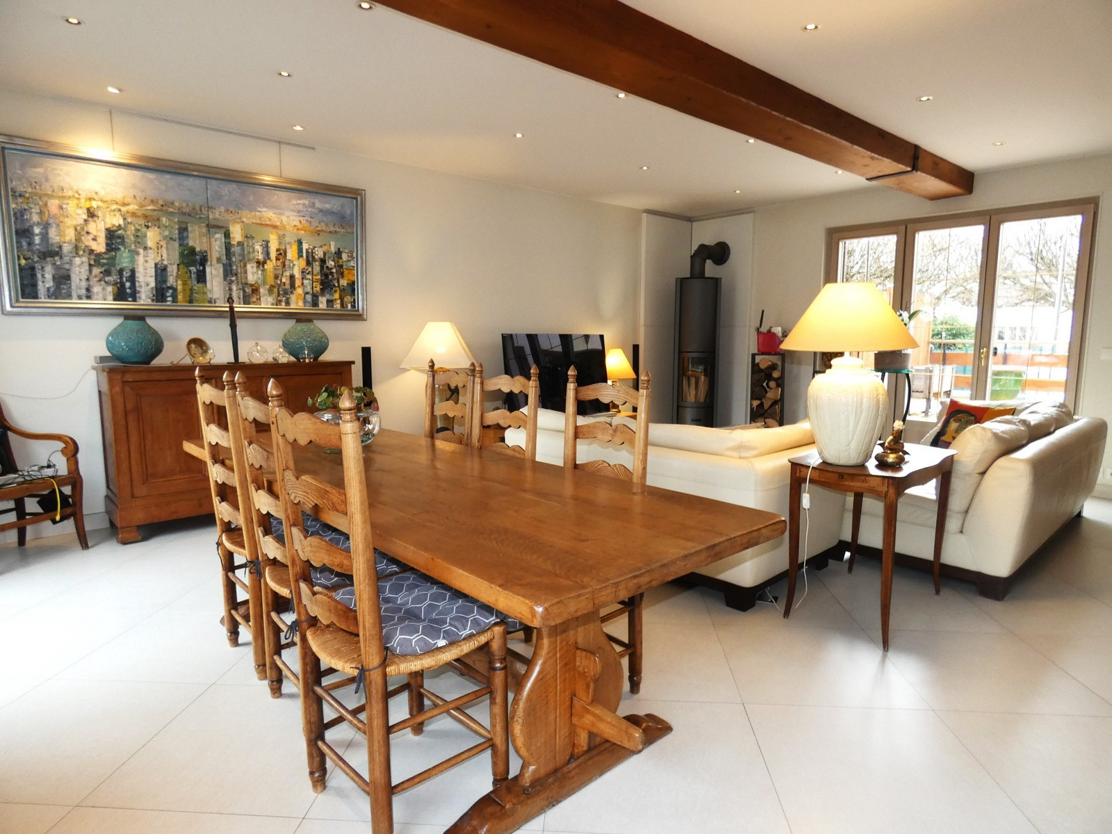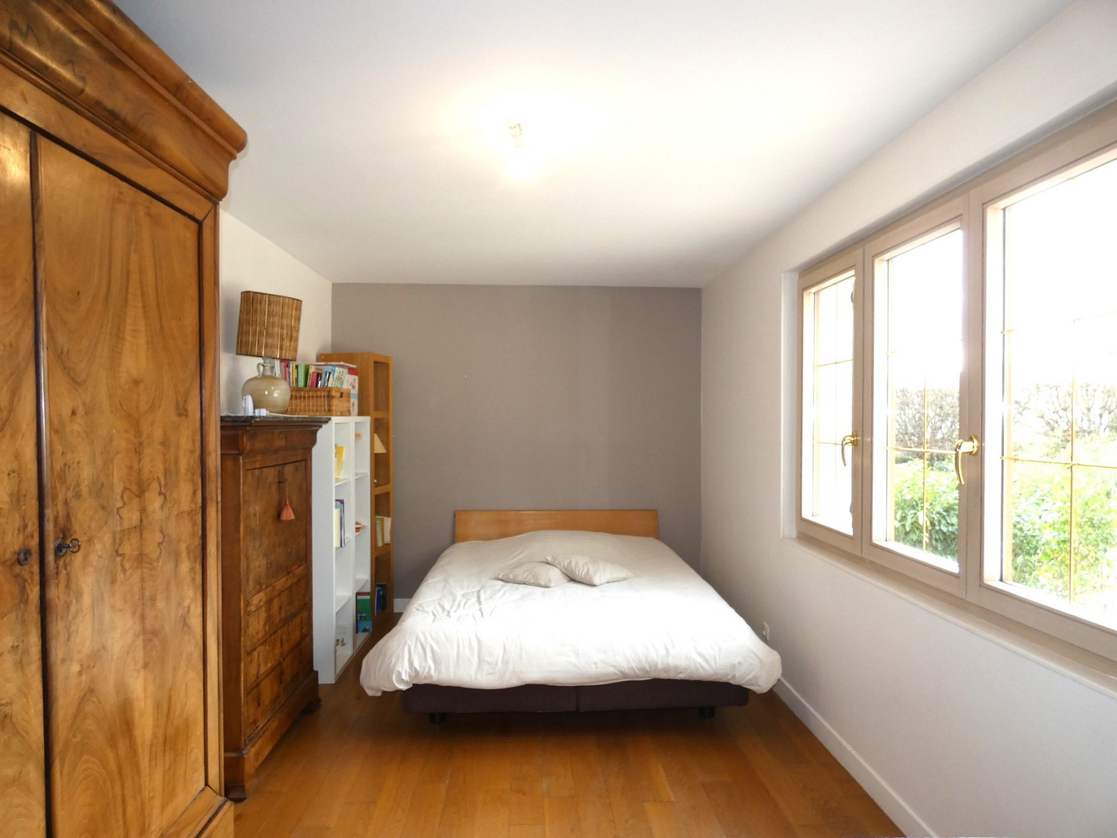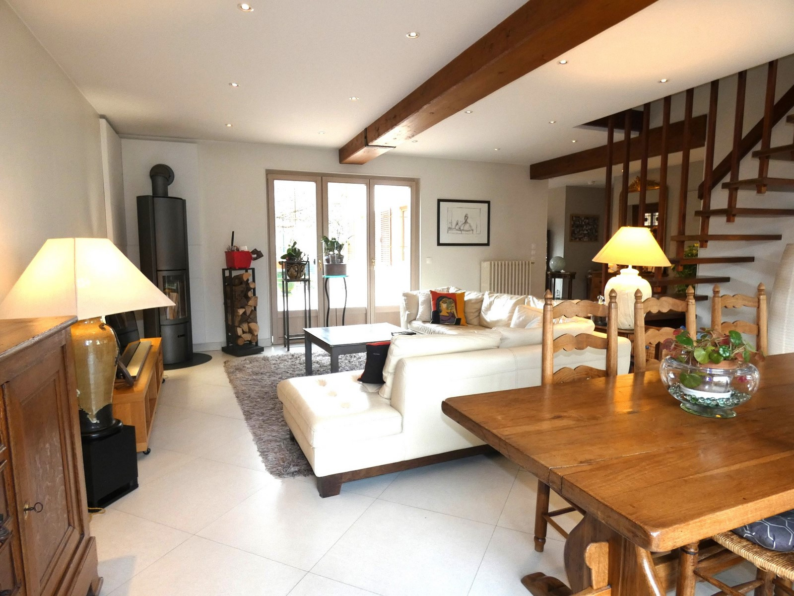 Située à moins de 15 mn à pied du centre ville et des écoles, spacieuse maison d'architecte d'une superficie habitable de 157 m² (182 m²au sol), en parfait état, très lumineuse, édifiée sur près de 700 m² de terrain, comprenant au RC : entrée avec dégagement, séjour double traversant de 41 m², donnant sur deux terrasses , cuisine équipée semi-ouverte de près de 15 m², chambre (13 m²) avec salle d'eau (7,6 m²), wc séparé. A l'étage : palier-bureau, trois chambres (11, 15 et 15 m²), salle de bains (7,5 m²), dressing, wc séparé, rangement (8 m²). Sous-sol total et sous-terrasse (surperficie total 144 m²) et comprenant :pièce semi-enterrée (16 m²), buanderie-chaufferie, cave, garage , cave à vin. Honoraires intégralement charge vendeur.