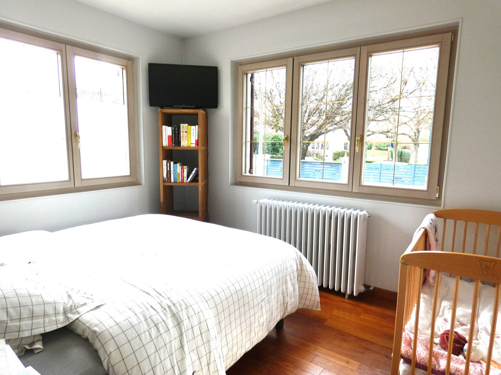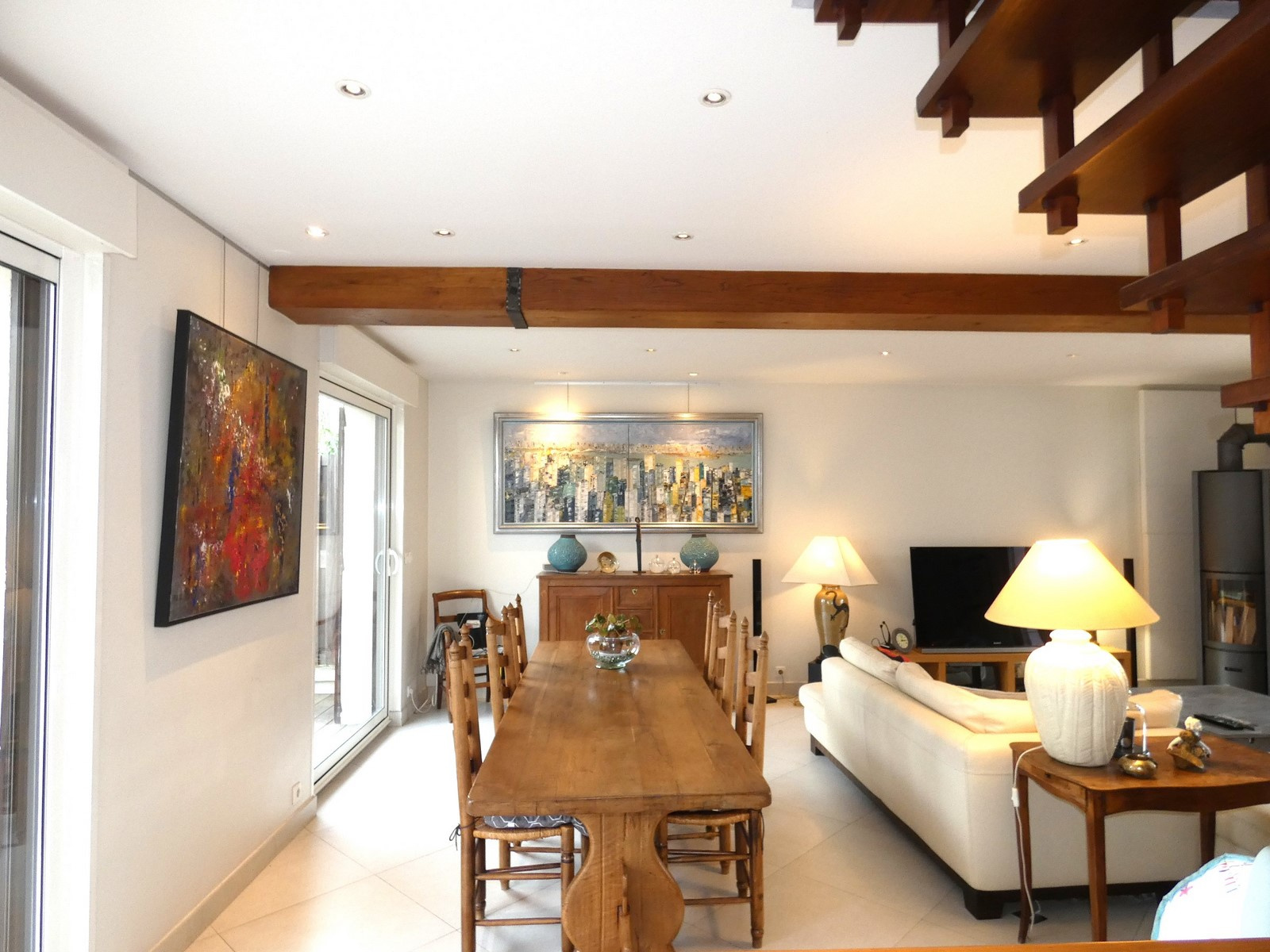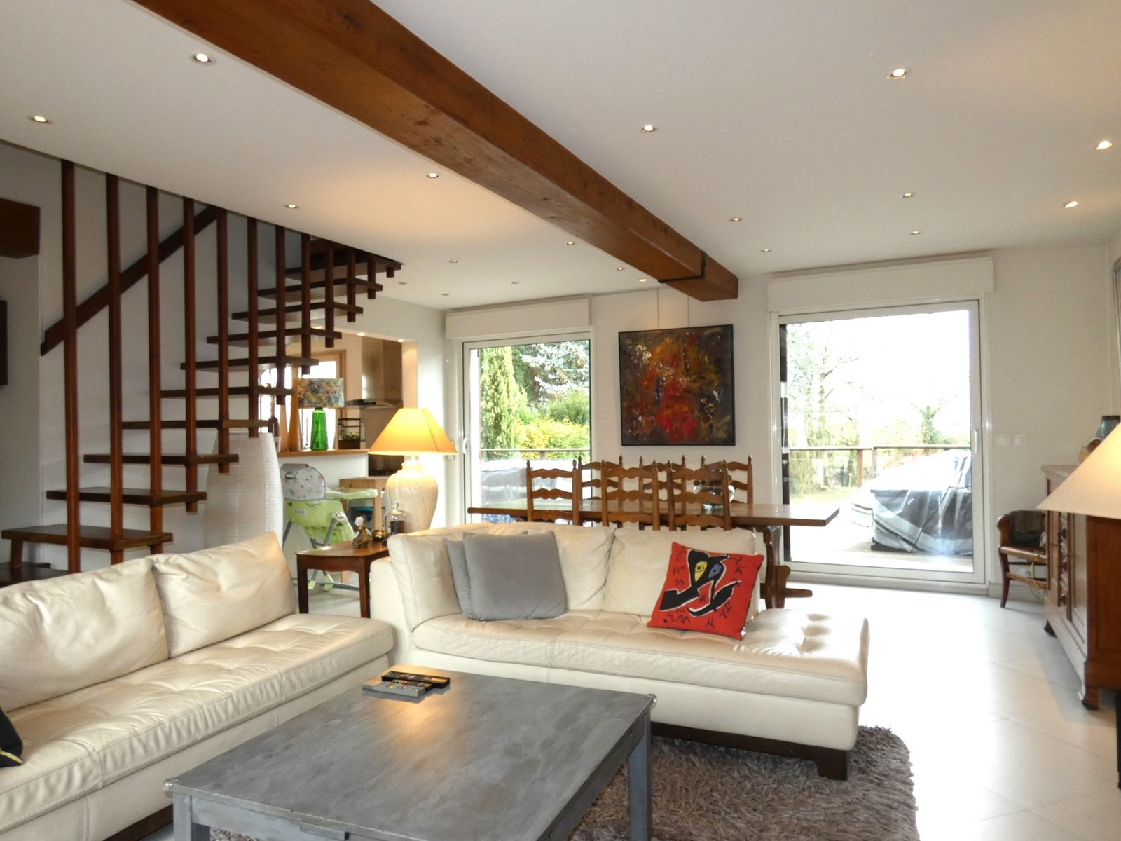Située à moins de 15 mn à pied du centre ville et des écoles, spacieuse maison d'architecte d'une superficie habitable de 157 m² (182 m²au sol), en parfait état, très lumineuse, édifiée sur près de 700 m² de terrain, comprenant au RC : entrée avec dégagement, séjour double traversant de 41 m², donnant sur deux terrasses , cuisine équipée semi-ouverte de près de 15 m², chambre (13 m²) avec salle d'eau (7,6 m²), wc séparé. A l'étage : palier-bureau, trois chambres (11, 15 et 15 m²), salle de bains (7,5 m²), dressing, wc séparé, rangement (8 m²). Sous-sol total et sous-terrasse (surperficie total 144 m²) et comprenant :pièce semi-enterrée (16 m²), buanderie-chaufferie, cave, garage , cave à vin. Honoraires intégralement charge vendeur.