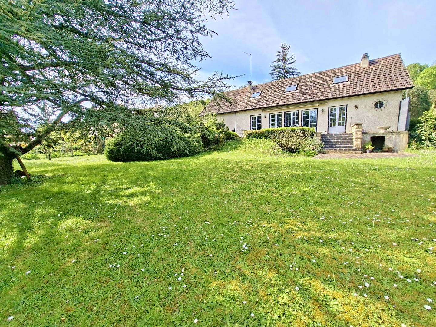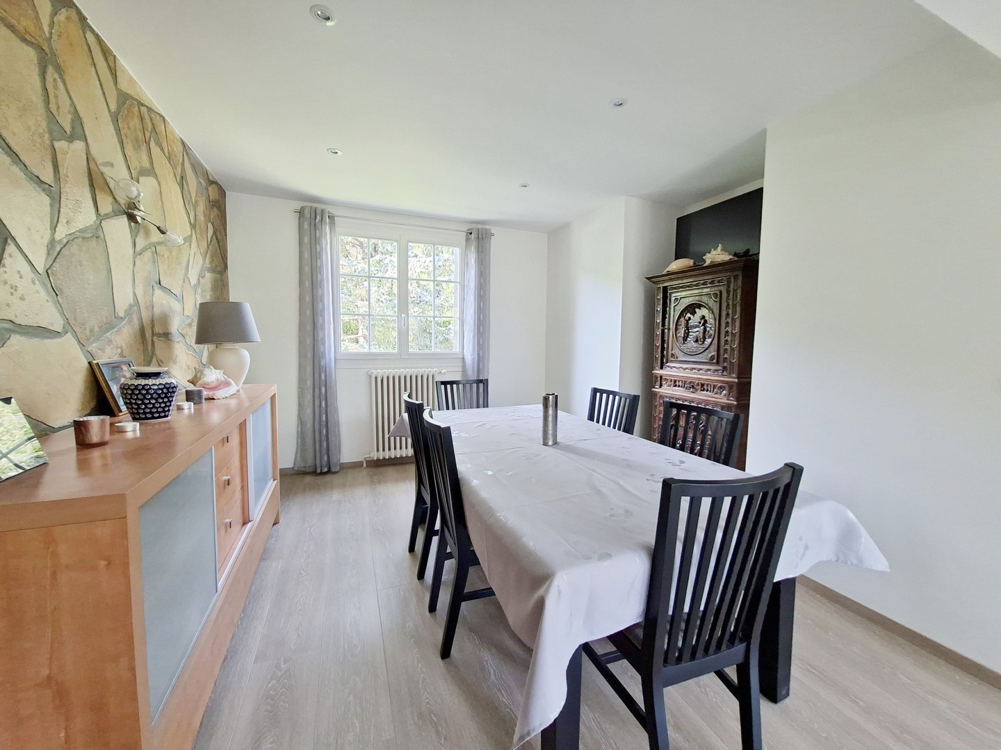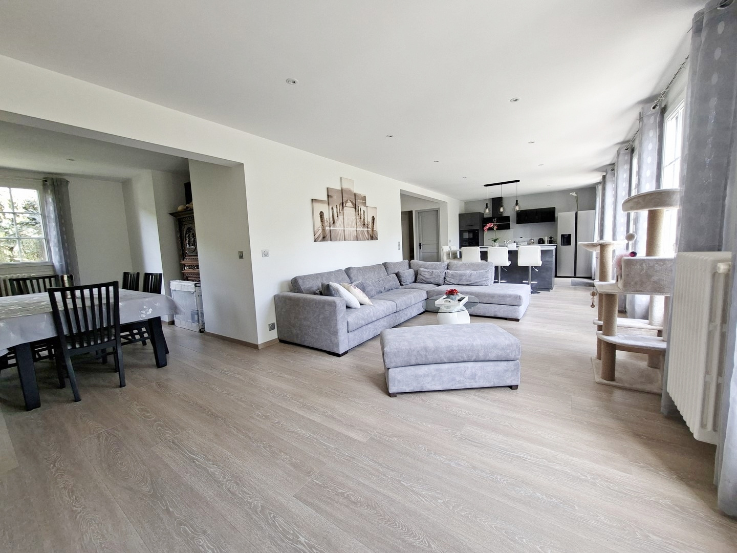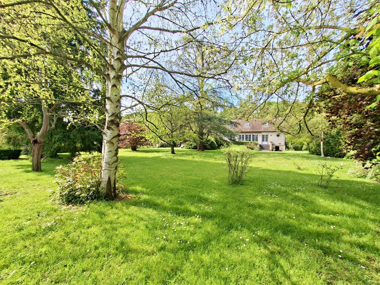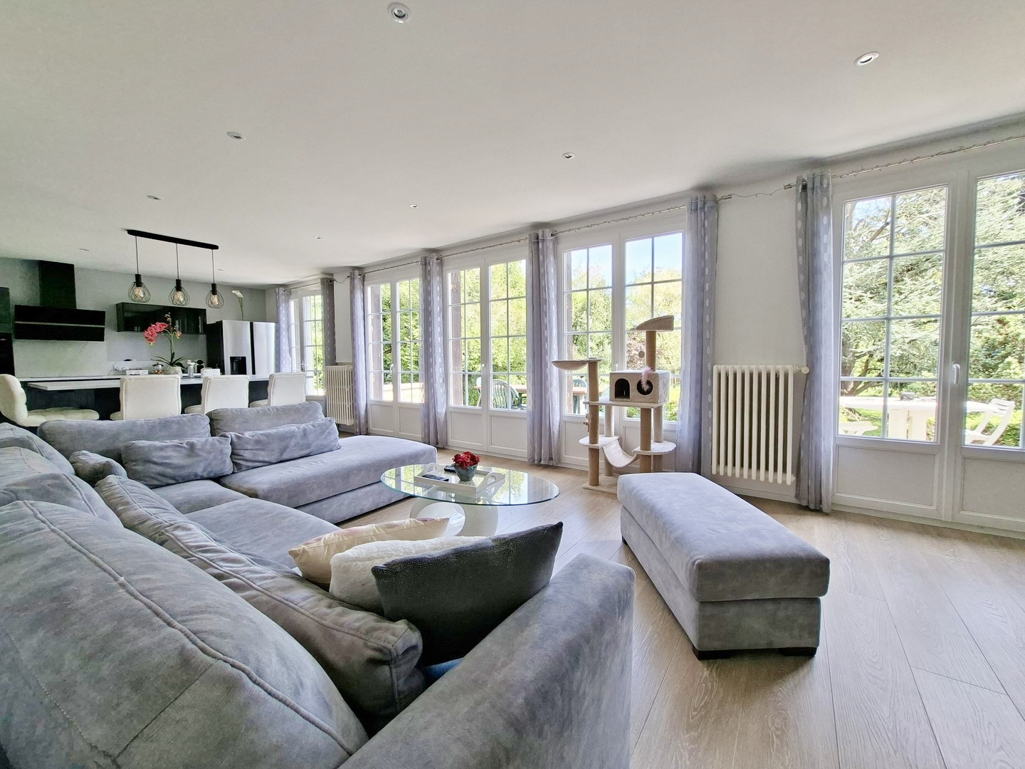 Pontoise l'Hermitage - Maison individuelle en parfait état, de 6 pièces principales, 202 m² utiles et 155 m² habitables, édifiée sur 2284 m² de terrain paysager, comprenant en rdc : entrée placards, cuisine de 11 m², aménagée et équipée ouverte sur séjour double 42 m² donnant sur terrasse de 30 m², chambre 10,77 m², wc, salle d'eau, buanderie ; à l'étage : mezzanine 15 m², dégagement 13 m², dressing, 3 chambres 17 - 11,80 - 11 m², dont 2 avec placards, salle de bains. Double vitrage, pompe à chaleur. Garage 35 m², stationnement sur terrain 3 vt. Ponton privatif. Honoraires charge vendeur