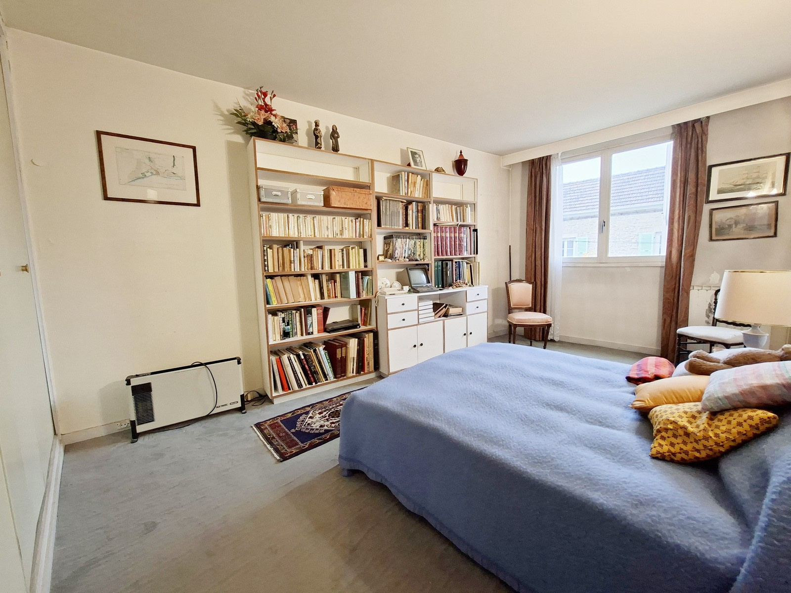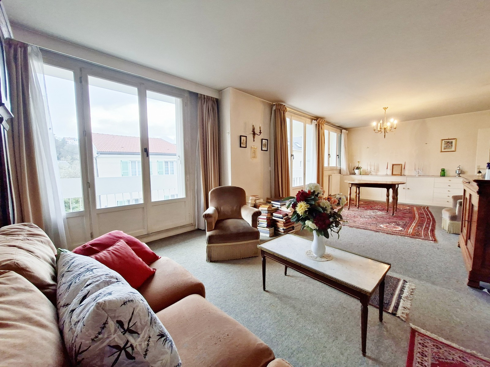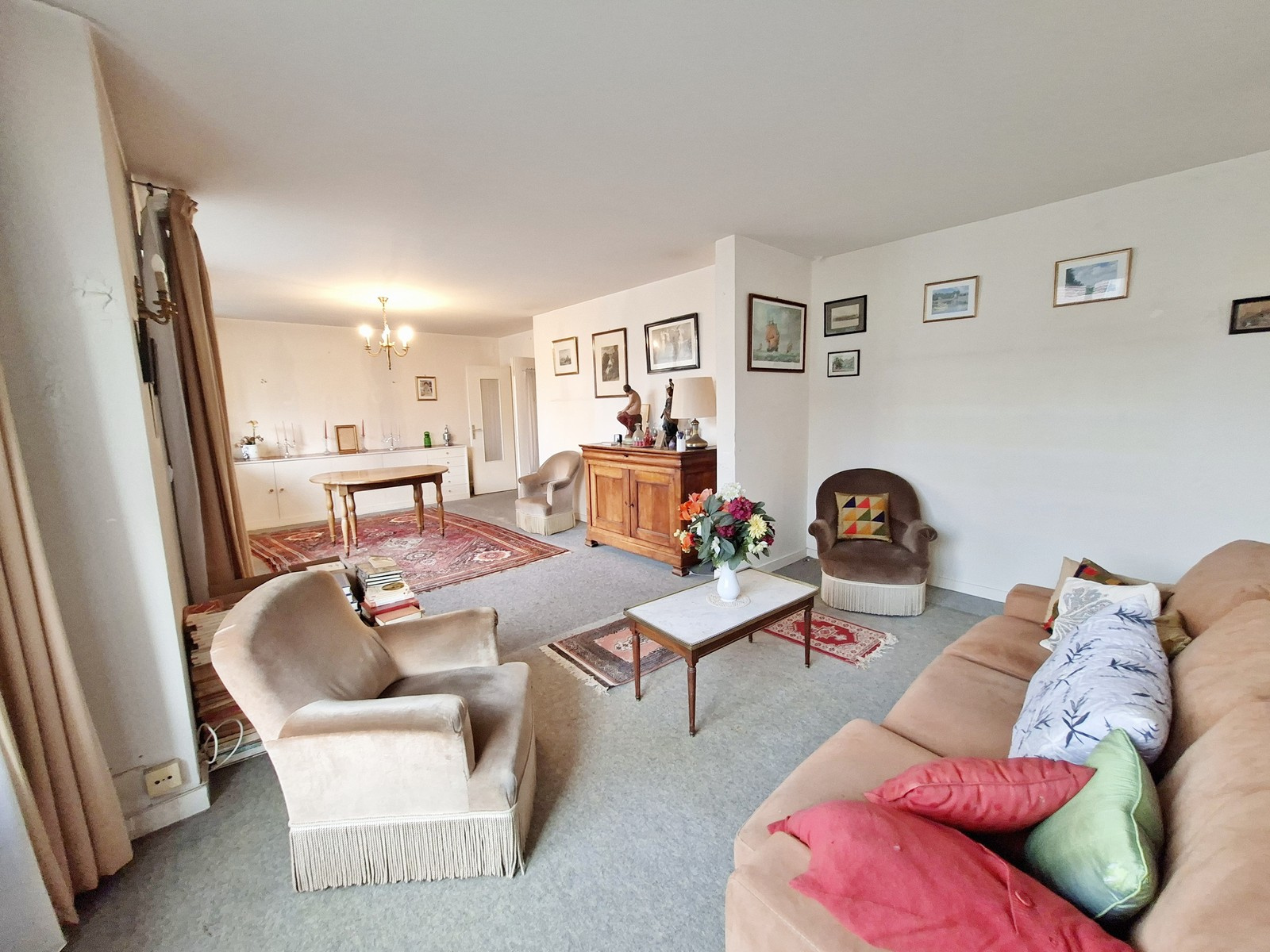 Situé dans un quartier calme et recherché, proche écoles, spacieux appartement d'une superficie de 91 m² comprenant : entrée, cellier, cuisine séparée, séjour double donnant sur un grand balcon, deux chambres, salle de bains avec séchoir, 3ème chambre possible. Box pour une voiture. Local vélo. Honoraires intégralement charge acquéreur.