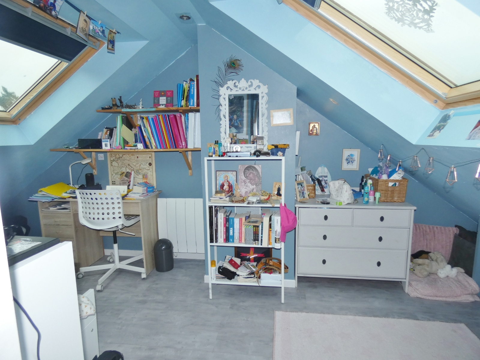 Située au calme, maison individuelle d'une superficie de 128 m², édifiée en 1995 sur 419 m² de terrain, comprenant au RC : entrée, séjour double avec cheminée insert, cuisine semi-ouverte avec arrière-cuisine, bureau, wc et garage. Au premier étage : trois chambres, salle de bains, salle d'eau, wc. Au 2ème étage : deux chambres, salle de bains et wc. Honoraires intégralement charge vendeur.