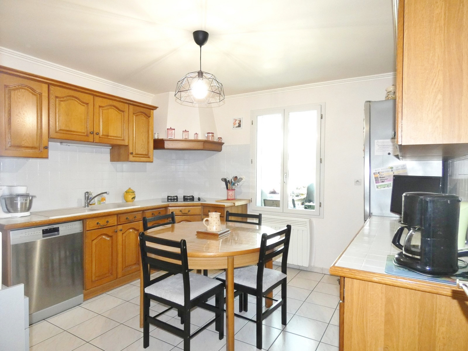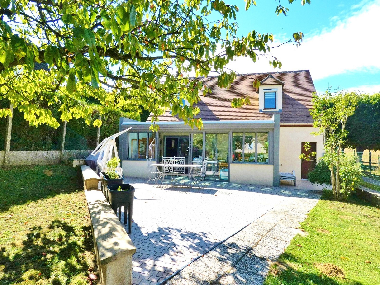 Maison individuelle en parfait état, édifiée en 1996 sur 500 m² de terrain, comprenant au RC : spacieuse entrée avec placard, cuisine séparée, cellier, séjour avec poêle à bois, donnant sur véranda de 23 m² (2019), chambre, salle d'eau, wc. A l'étage : palier, trois chambres, salle d'eau, wc. Garage. Honoraires intégralement charge vendeur.