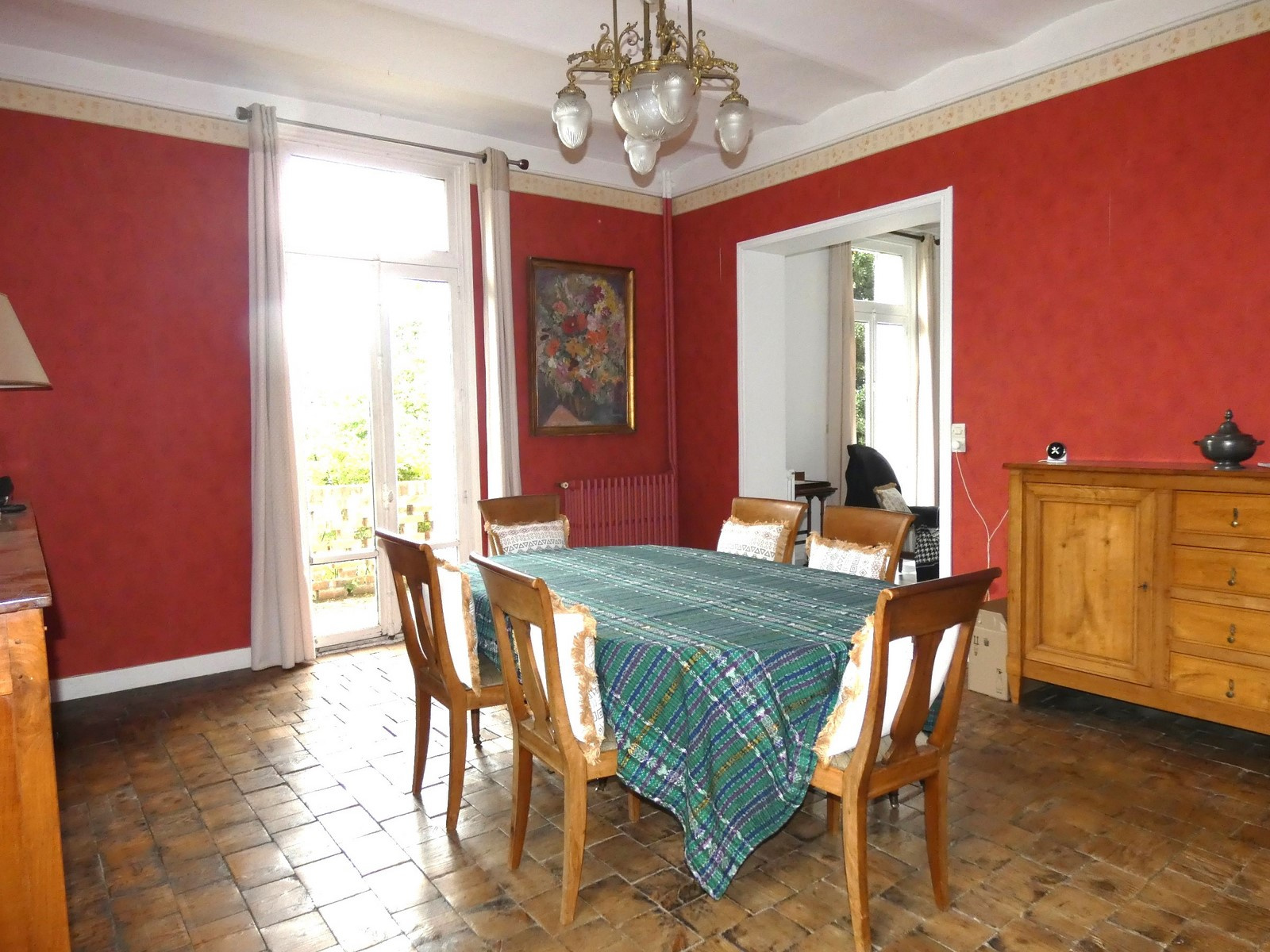 Située au calme dans un quartier recherché, spacieuse maison ancienne d'une superficie de 283 m², édifiée en 1890 sur un magnifique terrain de 3238 m² avec terrasse et balcon, comprenant : entrée, salle-à-manger,, petit salon avec cheminée, séjour, cuisine, bureau, 5 chambres, 3 salles d'eau, salle de bains avec wc, 2 wc séparés, sous-sol total. Garage. Possibilité de rentrer plusieurs véhicules sur le terrain. Honoraires intégralement charge vendeur.